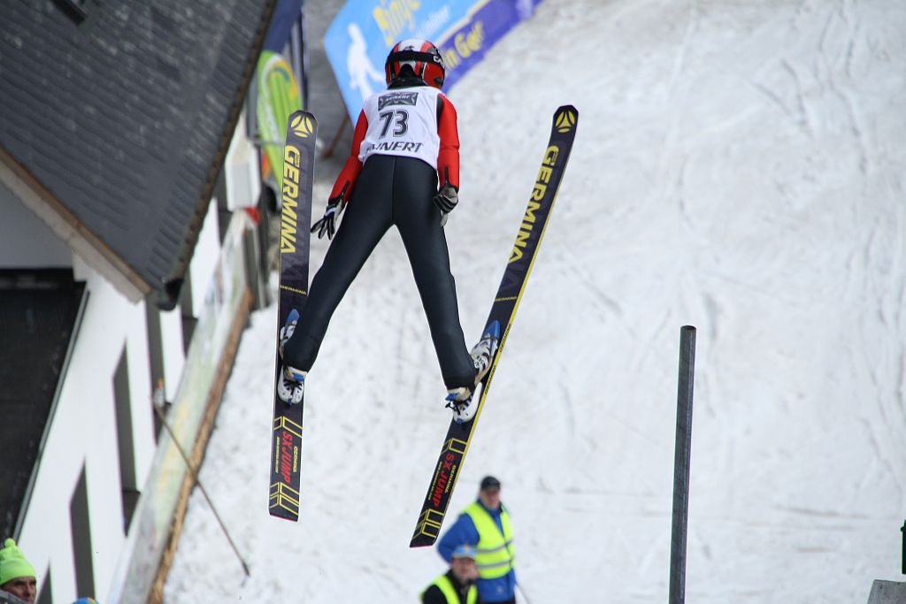 (Geyer) Der Arno-Dietz-Gedächtnislauf am Sonntag musste zwar wegen Schneemangels abgesagt werden, aber der Sachsencup und die Kreismeisterschaft im Spezialspringen und der Nordischen Kombination am Samstag, dem 3. März konnten mit großem Aufwand durchgeführt werden. Nachdem der Schnee des Auslaufes der Max-Liesche-Schanze, der zur Präparation der Laufstrecke genutzt werden sollte, nicht für eine akzeptable Loipe ausreichte, entschied man sich kurzfristig zum Umzug des NK-Laufes auf das Staudfeld an der Zwönitzer Straße, wo noch eine 1 km-Schleife aufgefahren werden konnte. 86 Jungen und Mädchen aus ganz Sachsen waren zum letzten Ranglistenwettkampf der Wintersaison ins Greifenbachtal gekommen. Dabei konnten die Lokalmatadoren zahlreiche Medaillenränge erkämpfen. Im Spezialspringen wurden Benito Wagler (Anfänger) von der K4-Schanze und Jakob Fischer (AK11) von der K25 Sachsencupsieger und Kreismeister. Bei den Mädchen I der AK9 und jünger gewann Anni Bartl Bronze von der K9 im Sachsencup und Silber bei den Kreismeisterschaften. Mit Platz 2 für Lucas Glaßer (AK11) und Platz 3 für Clara Fischer konnten hier zwei weitere Podestplätze errungen werden. In der Kombination gab es neben Benito Wagler, der auch hier in beiden Wertungen gewinnen konnte, 2 Doppelsiege bei den Jungen der AK11und den Mädchen I. Nach dem Lauf in der tiefen kraftraubenden Loipe wurden Jakob Fischer (Foto) und Anni Bartl Sachsencupsieger und Kreismeister. Silbermedaillengewinner im Sachsencup und Vizekreismeister wurden Lucas Glaßer und Angelina Anders. Herzlichen Dank für die Unterstützung des Bauhof der Stadt Geyer, der Pistenbullyfahrer des Motorsportvereins und natürlich aller Helfer.