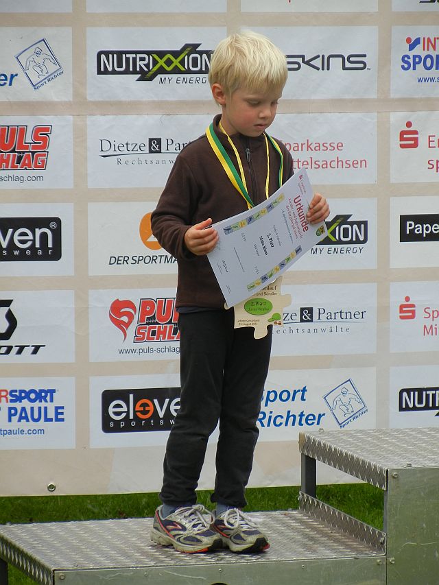 (Pobershau) 4 Podestplätze gab es für die Langläufer des Skisportvereins Geyer am Sonntag, den 25.08.2013 beim 11. Brettmühlenlauf von Pobershau nach Gebirge/Gelobtland. Das Trainingslager der vergangenen Woche hat sich also schon bemerkbar gemacht. In der AK5/6 sicherte sich Malte Klaus über die 500 m Distanz die Silbermedaille in der Tageswertung. Ein ganz starkes und vor allem enges Rennen gab es in der AK11/12. Martin Franke verpasste nur um 2,8 s den Sieg in diesem Rennen und belegte einen hervorragenden 2. Platz über 4,3 km. Sein Teamkollege Carlos Lang kam mit dem winzigen Rückstand von 0,5 s auf den 3. Rang. Siegreich gestaltete Tiny Sroka (AK15/16) ihren Lauf über 7,6 Kilometer. Weitere Platzierungen gab es für Linda Schumacher, Jakob Fischer und Niels Henk (alle AK11/12) mit den Plätzen 7, 8 und 11, sowie Kira Klaus (AK10/11) mit dem sechzehnten Rang. Da der Brettmühlenlauf ja gleichzeitig Erzgebirgsmeisterschaft war, sind noch folgende Ergebnisse auf dieser Ebene erreicht worden. Kreismeister wurden Carlos Lang (AK11), Martin Franke und Linda Schumacher (beide AK12) sowie Tiny Sroka (AK15). Den 2. Platz belegte Malte Klaus (AK6) und den 3. Platz erreichten Kira Klaus (AK10), Niels Henk (AK11) und Jakob Fischer (AK12). Herzlichen Glückwunsch.